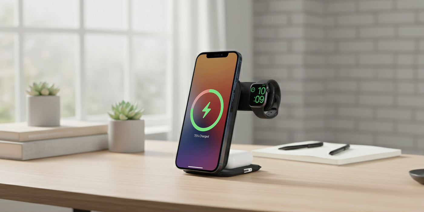 The OmniLynx 3-in-1 Foldable MagSafe Charger combines ultimate portability with powerful performance. Featuring a compact, foldable design with strong N52H magnets, it securely holds your devices and adjusts with a 180° stainless steel pivot. With upgraded 23.5W fast charging, it powers up your phone 65% in just 30 minutes, all while multiple safety certifications ensure complete protection. It's the sleek, two-device charging solution for any situation.