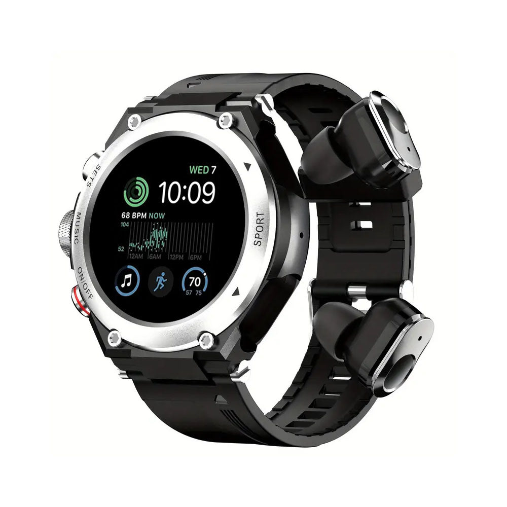 The AirCore Pro 2-in-1 Smart Watch combines a smartwatch, music player, and wireless earbuds in one portable device. It features a 1.28" HD touch display, immersive 9D sound, and seamless Bluetooth calling. With built-in health monitoring for blood oxygen, blood pressure, and body temperature, it keeps you informed with real-time alerts. The watch also stores and charges earbuds, offers local MP3 playback, and supports Bluetooth music streaming. Perfect for active lifestyles, it’s your all-in-one fitness and entertainment companion.
