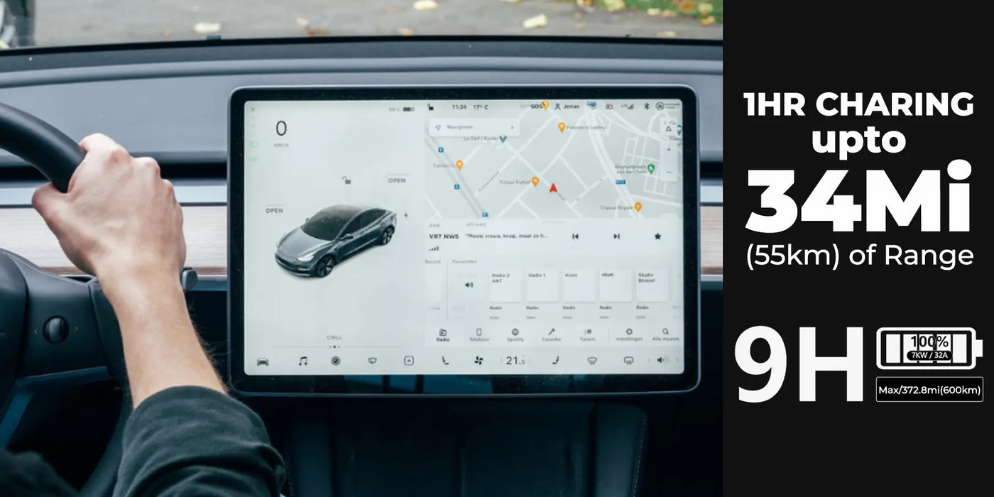 Get fast, efficient charging at home with up to 34mi (55 km) of range per hour, so you're always ready to hit the road.